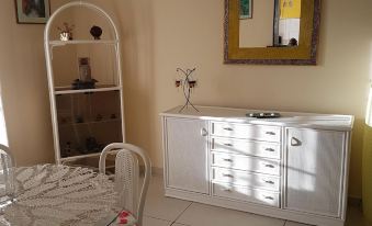 Living room: large convertible sofa, large flat screen TV, free wifi Internet, table and 4 chair.