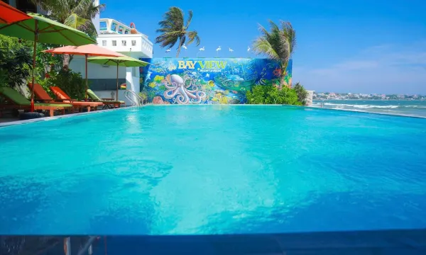 Situato a Phan Thiet, a 10 metri da Ham Tien Beach, Bay View Resort & Villas Mũi Né prevede una piscina all'aperto, un parcheggio privato gratuito, un giardino e una terrazza. In questo hotel a 3 stelle ogni alloggio ha una vista sulla piscina e gli ospiti possono fruire di un ristorante e un bar. L'alloggio propone una reception 24 ore su 24, transfer aeroportuali, il servizo in camera e il WiFi gratuito.
