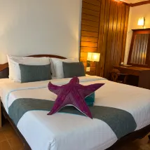 Un posto meraviglioso, la zona è semplicemente fantastica. Piccole villette, molto belle e pulite, con una bella piscina. Semplicemente fantastico 👍🏻. L'unico problema è il check-out alle 11:00, se si vuole usare la mattina per le immersioni, è troppo breve. Ogni ora in più costa 400 baht. Quindi niente 5 stelle.