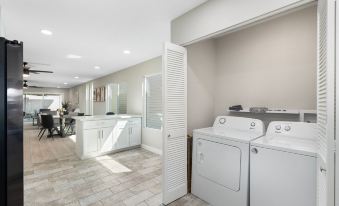 Features: Oversized rooms w/ double bath vanity, Central AC, WiFi, washer/dryer, Smart TV. Fully equipped Chef's kitchen w/ Coffee maker, blender, toaster, washer/dryer. Enclosed carport overlooks private street & only steps away from HOA community pool!