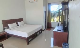 Individual chalets with adjacent car port, suggesting this is more motel than hotel. Certainly not a 'resort'. Close to the airport but miles from anything else, just getting food delivered can be challenging. I'm sure the bed used to be a concrete tunnel support, the hardest mattress I've ever not been able to sleep on. Reception staff excellent, as is usual in Thailand.