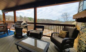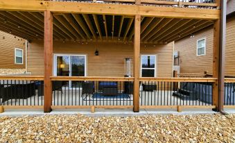 Luxury cabin inside the Wilderness Mountain Lodge resort! Beautiful view of the Ozarks and Table Rock Lake, and only 15 minutes from Silver Dollar City and many more attractions in the greater Branson area. Outdoor dining and fireplace on main deck. Private HOT TUB and fire table on lower deck. Top level is the Master suite with a fantastic view of the cove, king bed, and private sitting area and coffee bar--perfect for spending a little time alone. Main level has a queen bedroom suite, kitchen, and living room. Terrace level is home to the bunk rooms (6 beds), game room (air hockey, video games, board games), and laundry room. TVs in all bedrooms, common areas, and main level deck. Full access to resort amenities: 2 outdoor pools and lazy river (Memorial Day weekend through September 30), 2 indoor pools (open year-round), pickleball court, basketball half-court, play fort, or walk down to the cove for a swim. Share in our family's motto: "Life is an adventure!" Bring the kids and get that vacation started!