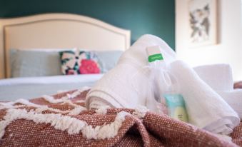 - Two full bathrooms upstairs, each connected to a bedroom and fully stocked with toiletries