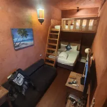 Dorm is really tight, with only a small locker which doesn’t fit more than a small day bag/valuables. The narrow space means it’s squished.