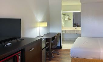 This motel delivers exactly what you’d hope for at a budget price point. While it’s not luxurious, it covers all the essentials extremely well. The room was thoughtfully furnished and included a fridge with a small freezer compartment. Everything was spotless, and the beds were exceptionally comfortable. Parking right outside the door made things very convenient. Despite being right off the highway, the room was completely quiet with no traffic noise. The WiFi and cable TV worked flawlessly, and the air conditioning kept the room cool without being noisy. The 24-hour coffee was a welcome bonus. All of this came at a very affordable rate.
