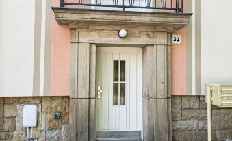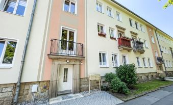 Casa plurifamiliare. Nella frazione Sonnenstein, a 2 km dal centro di Pirna, a 26 km dal centro di Dresden, posizione tranquilla, soleggiata in una zona residenziale. Parcheggio presso la casa. Negozio 300 m, ristorante 500 m, fermata bus "Pirna Klinikum" 300 m, stazione ferroviaria "Pirna" 2 km, piscina 4 km, piscina termale "Pirna" 4 km. Possibilità di pesca 700 m. Attrazioni nelle vicinanze: Wasserfall Lohmener Klamm 8 km, Gedenkstätte Pirna Sonnenstein 500 m, Miniaturpark 8 km, Basteibrücke 13 km, Bad Schandau 28 km, Dresden 29 km. Sentieri escursionistici: Sächsische Schweiz 1 km.
