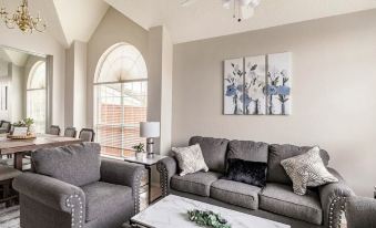 The house has all amenities including 2 kitchens (an indoor & outdoor kitchen), laundry room, office room, WiFi, bbq grill, and a basketball court.About pets:Pets allowed: dogs and cats (limit 2 total).About checkOut:Check out before 11:00 AM.About children:Children allowed: ages 0-17.About customRules:As per Plano STR policy, please respect neighbors and keep noise levels to a minimum. There will be exterior video monitoring and noise monitoring..Please make sure to respect quiet hours for neighbors from 10:00 pm-7:00 am. Also no 3rd party bookings.,Place all trash and recycle in the designated carts in the back alley for city pick up..About checkIn:Check in after 4:00 PM.About smoking:Smoking is not permitted.About minBookingAge:Minimum age to rent: 21.About events:No events allowed.Respect quiet hours from 10:00 pm- 7:00am..