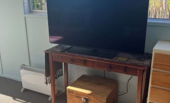 This bach is a converted garage. It is well set up for a younger couple or family. However we are aged, and did not find it suitable in several ways. One was property access. There is no gutter cut-out; instead two large heavy chocks to be manhandled into place. Even then, we sustained some vehicle damage as we drive a little car. We should've parked roadside. A large vehicle would have no difficulty, and younger folk could shift the chocks easier than us.
