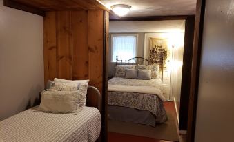 This 2 bedroom cottage has one bedroom for two, and 2nd bedroom has a queen & twin w/trundle, so, easily sleeps 6. Two full baths, one with a unique rock shower, fully-equipped kitchen with all appliances, towels & linens provided, & charcoal grill with smoker and outdoor table & chairs, along with spacious fire pit area makes being outdoors a pleasure!