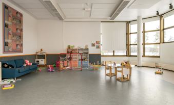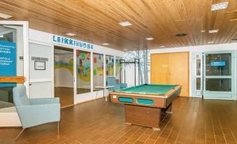 Although the main building no longer hosts organized activities, it provides shared facilities for guests, including a gym, playroom, billiard room, and library. Holiday Centre Huhmari has six rental cabins for four people each, and the main building offers meeting and event spaces that can be rented directly from the owner. The venue is ideal for small-scale meetings and celebrations, with a capacity for 200 people in the event space and accommodation for 24 people.