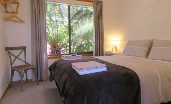 For cozy evenings, warm up by the wood heater indoors. Enjoy alfresco evenings on the boardwalk and fire up the BBQ, or enjoy a delicious homemade meal straight from the pizza oven. Enjoy your morning coffee on the front veranda or amongst the fernery in the lush garden. Keep an eye out for visiting wildlife and the vibrant native blue wrens.About pets:No pets allowed.About children:Children allowed: ages 0-17.About smoking:Smoking is not permitted.About events:No events allowed.