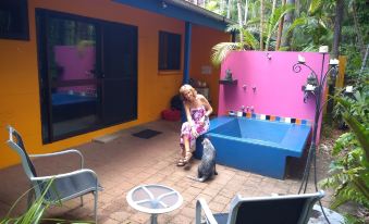 Pink Flamingo Resort was the perfect place for our stay in Port Douglas. We had a garden villa which included a private patio, outdoor tub, hammock, & patio furniture. The unit itself was as good as any air b&b. The grounds are not only quiet but also reflect the tropical rainforest of the surrounding region. Other amenities included laundry, swimming pool(no curfew), honor bar(beer & soda), bbq, library (books & DVD’s),Wi-Fi, pet friendly, and more. The staff were great. Not far from the town center. We would definitely stay there again.