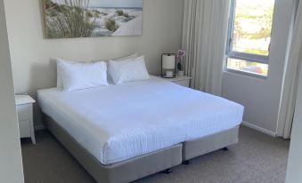 Lovely apartment within walking distance to shops, clubs and beach. Great parking facilities. Microwave, toaster and kettle available in studio apartment. Good sized room including a spa bath and shower. Guest swimming pool and BBQ area plus the addition of a roof top spa with amazing views.