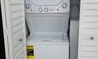 This centrally located unit offers full kitchen and washer-dryer machine.