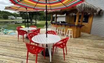 Enjoy your morning coffee overlooking the private man-made lake. Spend the day and night on the huge deck with a fully equipped tiki bar, chaise lounges, and multiple seating areas. In between drinks and food at the tiki bar, challenge your family and friends to a game of volleyball, badminton, corn hole, spike ball, bocce, or basketball. Bring your fishing poles to fish off of the dock (catch and release only). There is also, a fun kids play area with picnic table, recreation set, and toddler playset. When you are done playing outside, come in and enjoy a game of pool or foosball, play Pac-Man, Galaga, or Frogger on the full-size arcade machines, or play any of the many board games we have onsite.