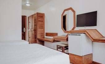 A localização é muito boa, mas o quarto é bem ruim, principalmente a cama com colchão de mola e bem velho. As molas ficam cutucando a gente quando deita e parece que tem um aro de ferro ao redor, péssimo e desconfortável. Café da manhã bem ruim. No primeiro dia minha esposa pediu pra esquentar o pão dela num tostex que não tinha ali, a funcionária com cara de nojo levou pra dentro da cozinha e esquentou. Mas no segundo dia disseram que o tostex tinha quebrado, segundo o funcionário tinha apresentado fumaça.... Uhum, sei. Os hóspedes são bem mal educados, falam alto pelos corredores, crianças correm pelos corredores tbm e ninguém toma providências. Não há ordem, educação nem respeito aos demais hóspedes. O negócio é bem povão mesmo. Se soubesse não teria ficado ali jamais.