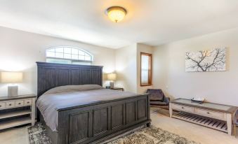 At night, retreat to the primary suite, complete with a king-size bed, en-suite bathroom. The additional bedrooms offer a cozy queen bed and bunk bed room, and bonus air mattress ensuring a restful stay for up to eight guests.