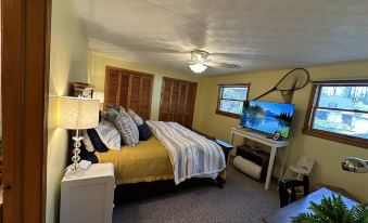 Inside you will enjoy our cozy 1950s MI Cottage. Professionally curated with many amenities for those in your party who may need a break from the sun. The home has sleeping arrangements for 14. Every room enjoys its own TV. There is a desk in the master bedroom for those whose trip involves a little work while they play. Our family is happy to share our much loved cottage with yours. We've been able to make years of memories here and look forward to you and yours making memories.About pets:No pets allowed.About checkOut:Check out before 11:00 AM.About children:Children allowed: ages 0-17.About checkIn:Check in after 4:00 PM.About smoking:Smoking is not permitted.About minBookingAge:Minimum age to rent: 25.About events:No events allowed.