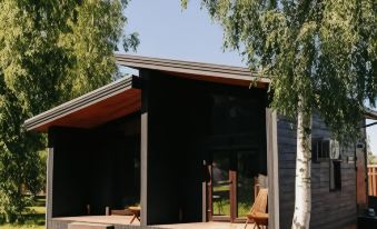 On the territory of the Harland Village eco-hotel, 4 modular cabins are located at a remote distance from each other among Karelian trees, equipped with everything necessary for an ideal holiday. Really stylish houses for a comfortable stay outside the city. The cabins have panoramic windows overlooking the river and forest and a private terrace with barbecue.