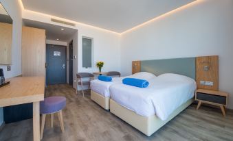 Still here at Protaras plaza and we are having such an amazing holiday. I was pleasantly surprised when we arrived at the space jn the room. I like the fact there is plenty of storage. The rooms are cleaned to an exceptional standard and the sea view is fabulous. Dimitris checked us in when we arrived and was so friendly. Breakfast is good with something for everyone. The staff as a whole are all really helpful and friendly. The pool area is chilled out with a pool bar and always beds free to use. We didn't really use the pool that much with having fig tree bay on out doorstep. Fabulous location and such a great hotel. I highly recommend it.