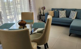 Entire serviced apartment in Punta Cana fully furnished. Gated residential with lots of open spaces, outdoor gym pool, kids playground, dog park, and parking space. Wi-Fi. Roku TV, Dysney plus and Netflix.About pets:Pets allowed: dogs less than 50 lbs per pet (limit one pet total).About checkOut:Check out before 11:00 AM.About children:Children allowed: ages 0-17.About customRules:No smoking of any kind allowed in the property. Please do not dry cloths in the balcony, use the designated area in the laundry room. use the hangers.Maintain windows and glass doors closed while air conditioned is running, if the use of electricity is use out of proportions, $75USD will be charged,Take out the garbage and dispose it in the garbage containers placed on the side of building. No littering allowed in the shared spaces and pool area..About checkIn:Check in after 3:00 PM.About smoking:Smoking is not permitted.About minBookingAge:Minimum age to rent: 25.About events:No events allowed.