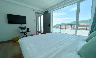 位置優越,正處於青山漁村。海景房!環境乾淨,民宿分為兩層,二層是一個天台,可以直接看到海。我們住的二層,房間幾何構型優美,簡約裝飾風格,兩面玻璃牆,透過房間可以看到海。房間價格合適,性價比極其高。老闆熱情細心,符合“好客山東”的名牌。這個季節很舒適,天台上有桌椅,坐在凳子上喝茶或者辦公都是很愜意的享受。五百米處就是打卡的青島青山漁村,村子很安靜,原生態未商業化,巷子裏掛着瓜果蔬菜!十分推薦。