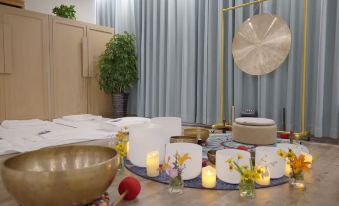 大堂的佈置文藝中古,別有一番情調,有茶台、還有很多圖書,坐下來讀幾頁書、喝一杯茶,休閑度假的滿滿能量回歸已實現一大半;房間佈置温馨,古色古香,還配備有榻榻米茶台,可喝茶、禪坐、冥想,特別適合朋友休閑小酌暢聊。白天看看海、晚上在這裏休息放鬆;店裡還贈送泡腳包、助眠包、中草葯眼罩及中式推拿理療項目贈送,師傅技術高超,早晨有八段錦團課、下午有頌缽療愈課程、贈送的早餐也可以,是名副其實的康養酒店,是度假休閑的不二選擇 ,慶幸這次選擇,也會介紹給朋友。