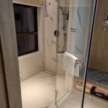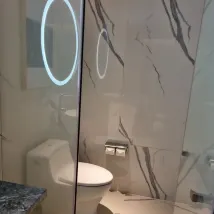 The bathroom area couldn't be locked and the door was extremely heavy (need to use a lot of strength to close) which I suspect was faulty.