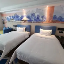 There is nothing much within the hotel location. Need to take a short taxi ride to Jia Ji Zhen. Check in and out is very efficient. The room is huge and clean. However, the sound proofing is not very good. Can hear footsteps and sound middle of the night. Breakfast is good. As we are lazy to go out for dinner, the reception staff helped us to order food online. We would like to thank Mr Wang (王先生) for going the extra mile for helping us. The hotel may consider having vending machines i.e. drinks, snack and foods for the guest convenience. Overall, we had a good stay in the hotel. Keep up the excellent work.