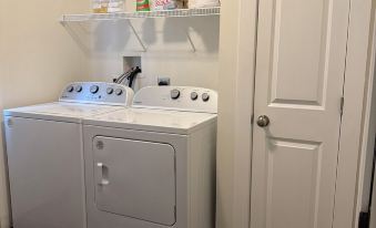 Enjoy details that make travel seamless: 24-hour self check-in, fast Wi-Fi, free parking for two, washer/dryer with Tide Free and Clear detergent, central A/C & heat, and baby gear (high chair + travel crib).