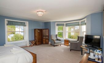 We have just spent a fantastic 11 days at Baie Moore and have booked two more 14 days stays for next year, as it's such a perfect place to stay. I have stayed in many five-star hotels all over UK and Europe but have never been so comfortable and well-fed before. The accommodation is palatial, a massive bedroom, (with a king-size bed, high quality bedding and perfect pillows) beautifully equipped and decorated, with an unbelievable view from its bay window overlooking a lake and the sea...plus a similarly stylish big bathroom with quality toiletries and plenty of fluffy white towels. Breakfast is worth getting up for - fresh fruit or fruit compote, natural yogurt, cereals or porridge; then an excellent menu with something for everyone. The Full Manx Breakfast was generous and superbly cooked by Simon, who is a top-class chef. My own favourite was poached eggs on toast - amazing eggs from a local farmer, bright orange in colour, and very tasty. The building is a magnificent example of Victoriana, expertly refurbished and stylishly furnished. Jen and Simon are brilliant hosts and have made a masterpiece of this very individual haven. Our room is booked for all our future visits and anyone who stays here will feel the same. Thank you, Jen and Simon, for the warm welcome and fantastic service. Can't wait to return again, and again....