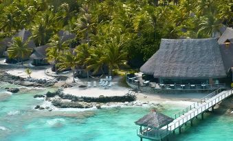 Il Lagon Blue Restaurant serve specialità francesi, polinesiane e internazionali per il pranzo e la cena, mentre il Mawake Bar offre cocktail tropicali e un affaccio sulla laguna.