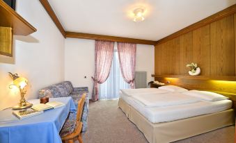 Albergo buono in un paese Raas molto piccolo e per questo con una tranquillità che rigenera. Ho prenotato solo B&B ad un prezzo onesto per la tipologia di struttura. La sera che siamo arrivati abbiamo chiesto se potevamo cenare, ed è stata una ottima cena al prezzo di 20€ a persona, ma ne valeva molto di più. , Ha una piscina esterna ben tenuta ed un prato ben tenuto, che jn voglia dormirci sopra. Anche la spa pur se piccola ha la sauna, la biosauna e il bagno turco, vale.I l Molto buone le due sale relax con poltrone dondolanti veramente rilassanti. C'è anche una sala fitness con parecchi attrezzi, che non ho utilizzato perché le belle giornate di sole che ho trovato inducevano a belle passeggiate. Nota critica per la colazione, veramente scarsa per i dolci, con poca scelta e non di prima qua lità. Migliore ma di poco il salato. In un albergo frequentato da stranieri, trovare solo l'uovo sodo mi pare un pò poco. Parcheggio gratuito è sempre apprezzato. Nel complesso comunque un albergo che mi sento di consigliare.