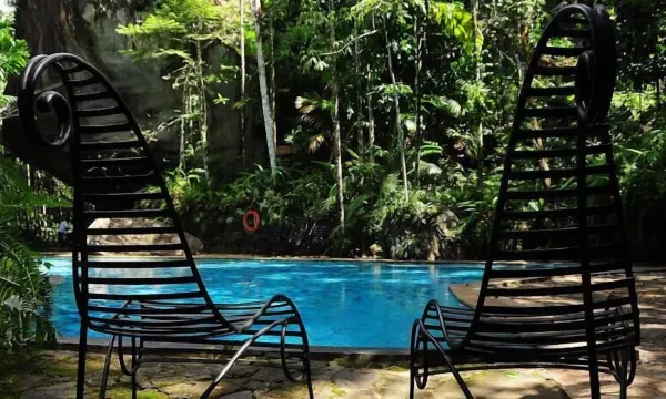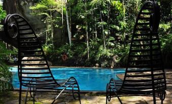 It was a calm and quiet place. The entire place was built with stones inside a rain forest. The whole location had an amazing view. A natural pool is also available. The dining area under a huge rock was attractive for dinner. This place is most suited for a set of people. Their food was delicious.