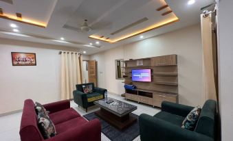 Fully Furnished Apartments Islamabad: Enjoy the comforts of home with our fully equipped kitchen and spacious TV lounge.