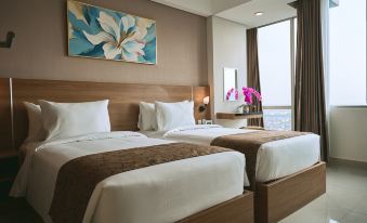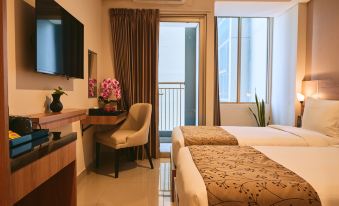 Pelayanan bagus, semua karyawan di training dengan baik, AC dingin, kamar ok, ada smart tvv, wifi lancar pool, di sekitar hotel ga ada makanan, gpp se tingal pesan aja by ojol, minesnya lantai agak lengket hbs di pel, kayaknya dr pembersih lantainya yang kurang cocok dan satu lagi untuk makanan, hampir semua zonk, kue serat, paling yang ga serat bolu gulung.