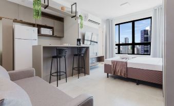 Estadia ótima, Studio super confortável e boa localização, só senti falta de um escorredor de pratos ou ao menos um pano de prato.