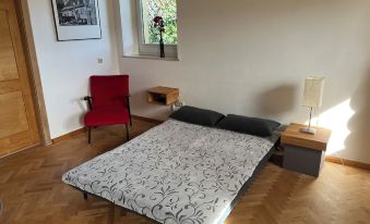 The holiday apartment in the Franconian country house style was completely renovated in 2021. Particular emphasis was placed on the use of untreated precious woods. The breathable sandstone walls of the historic building ensure a very pleasant indoor climate in both the cold and warm seasons.