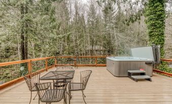 This peaceful and private home overlooking the Zig Zag River perfectly blends rustic charm and modern amenities. The large outdoor deck, with its private hot tub and private gas grill, offers plenty of space to enjoy evening meals while taking in the amazing river views. Mt. Hood Skibowl is just nine miles away and offers skiing, snowboarding, and other winter sports activities in the winter and summer. Timberline Ski Area is a little over 16 miles away. Enjoy being close to a Mt. Hood Express stop - hitch a ride to Skibowl and Timberline! With its proximity to three rivers, remember to bring your fishing poles. Mt. Hood National Forest, just under 16 miles away, offers hiking, biking, and kayaking opportunities.