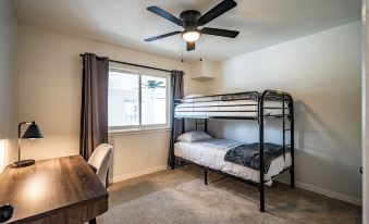 Our home is beautifully decorated with one King bed in master with a smart TV. The 2nd bedroom has a king bed. Queen bed in the 3rd bedroom and a bunk bed in the children’s room with a desk. We also have a queen sleeper sofa in the living room with a 65in smart TV. The kitchen is fully equipped and has everything you need for a short or long stay.