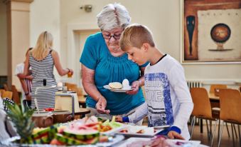 La colazione a buffet è servita nei giorni feriali dalle ore 07:30 alle ore 09:00 e nel fine settimana dalle ore 07:30 alle ore 09:30, dietro pagamento di un supplemento.