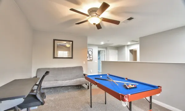 Note that all TV's have a Roku device for streaming but there is no cable box for local TV. You'll want to login to your favorite apps such as Netflix, Disney Plus, Amazon Prime, etc. The family room fireplace is decorative and usage is not included. There is a futon in the loft, but admittedly it's not too comfy. Ideal for kids or people who can sleep anywhere.