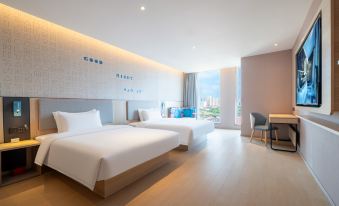 The hotel is the new product of Home Inn, Home Inn 4.0, featuring a new visual style and experience that reflects youthful energy and trendy, fashionable design. The hotel is located at the intersection of Yantai Road and Xuelin Road, close to several higher education institutions, including Qufu Normal University (Rizhao Campus), Jining Medical University (Rizhao Campus), Rizhao Vocational and Technical College, Shandong Vocational College of Water Resources, and Shandong Foreign Languages Vocational College. It is also near popular night markets such as Rizhao Xingye University Town Night Market, Starlight Night Market, and BOX Yue Dong Street. Wanda Plaza and China Resources MixC are only a 10-minute drive away. The surrounding area offers numerous dining options and convenient transportation. The hotel features a large parking lot for your car. Sleep soundly on the Mengbaihe zero-pressure mattress, and enjoy a more luxurious experience with high-speed negative ion Leyfen hairdryers in the rooms. The lobby is equipped with an intelligent delivery robot for contactless deliveries, providing peace of mind. The self-service laundry room is equipped with Haier commercial washing machines and dryers. There is also a full-view gym with floor-to-ceiling windows, offering greater convenience and comfort. The lobby has leisure and business areas, with a self-service water bar and coffee machine. A combined Chinese and Western buffet breakfast is available to awaken your taste buds in the morning. With a complete new upgrade, every traveler returning to “Home Inn” is given a sense of belonging.