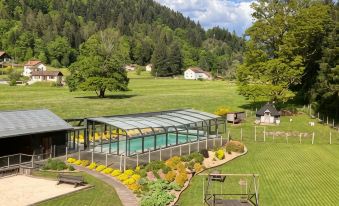 Excellent séjour dans cet établissement avec prestations de haute gamme. Appartement magnifique . Décor chaleureux et excellent mobilier. Très fonctionnel. Les services sur place sont parfaits pour une prestation complète ( piscines int et extérieur. Jacuzzi sauna ..) le jardin et ses commodités ( table , barbecue , terrain de boules , ping pong). L emplacement dans la nature proche d une rivière et de randonnées. Le lieu idéal pour visiter cette belle région. Et le propriétaire attentionné pour ses hôtes. On y reviendra avec grand plaisir et sans hésitation !