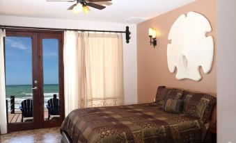 All three bedrooms are master suite featuring a California King Luxury beds, all three are facing the ocean, large view glass and doors out to the patio and ocean, and private bathrooms with double sinks and a beautiful large walk in showers. One of the bathrooms as an A.D.A. approved (wheelchair accessible).***** Also available is the Casita upon request 4th bedroom with a California King Luxury bed and a full bathroom and a walk in shower*****. The great room has a dining table with seating for 6, a comfortable Lazy Boy reclining sofa and love seat (sofa sleeper), futon/sleeper for relaxing and visiting, Large doors as well as large windows to the beautiful view of the ocean. There is a large covered patio with dramatic circular staircases leading down to the beach for your enjoyment. We have a full size propane grill on the front porch as well as a fire pit down by the beach.