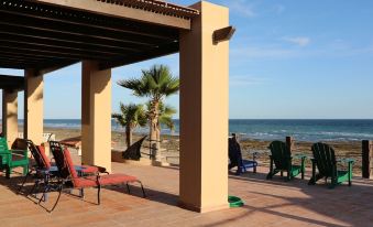 Come stay at our beautiful beachfront private home in Las Conchas in Section 8. Hacienda is a beachfront property that features over 2500 square foot main house with a large open concept kitchen/family living space, three bedrooms and three baths. also available is a 4th bedroom with a full bath (Casita). The covered patio looking out to the Sea of Cortez is over 1500 square feet complete with dining table, 4 large lounge chairs, a large propane grill. The home sits right on the Sea of Cortez.