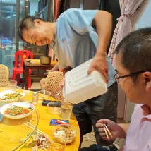 Il cibo cucinato dal negozio è delizioso, c'è anche un grande mahjong e ho anche provato a pescare il pesce delle risaie!