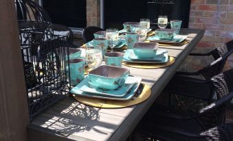 The Front Entrance boasts the perfect dining room, for gathering for a large dinner, with everyone at one table. This creates the perfect atmosphere to photograph everyone as you create memories to last a lifetime. The dining area can also be used as a gathering place to play board games or card games with the group that you are traveling with. I have supplied a tablecloth, to cover the wood table, for such occasions. Natural Wood is less forgiving of scratches and nicks, so to ensure that each guest is able to enjoy the beauty of the real wood, throughout the home, we ask that it be protected with tablecloths, placemats, and coasters, as needed.