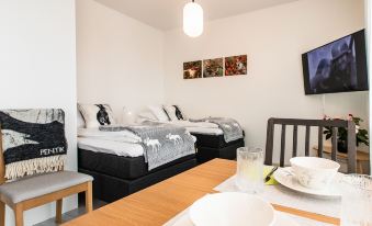 Alloggia in una delle 8 camere della struttura! Nella tua sistemazione, completa di cucina con frigorifero con congelatore e forno, ti sentirai come a casa. Il Wi-Fi gratuito ti consente di restare in contatto con il mondo, mentre la TV a schermo piatto è l'ideale per concedersi un po' di svago. I comfort includono scrivanie, salotti separati e letti aggiuntivi (a pagamento) su richiesta.