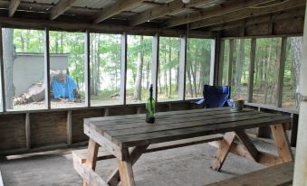 Wildlife is amazing in this area. In addition to a plethora of fish right off the dock, there are eagles, loons, and a great blue heron that lives nearby. The view cannot be beat. We bring an inflatable mattress for the living room (which is technically the 3rd bedroom) because the fold out couch is horrible (as they all are- is not unique to this place) and we remembered to bring camp chairs which we used on the screen porch and in the living room. (there is a picnic table on the porch as well)